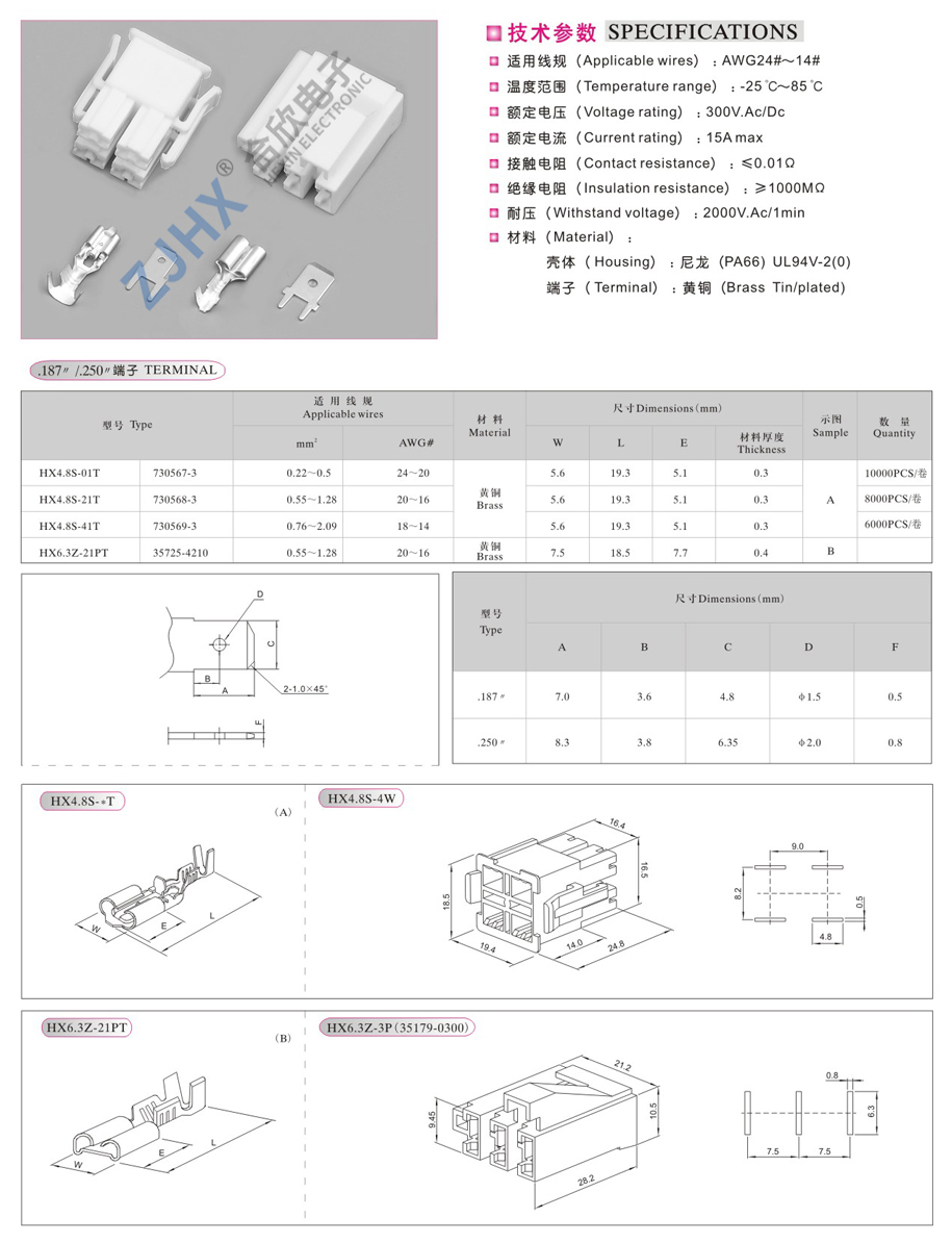洗衣机系列连接器(4.8带锁/6.3轻插)